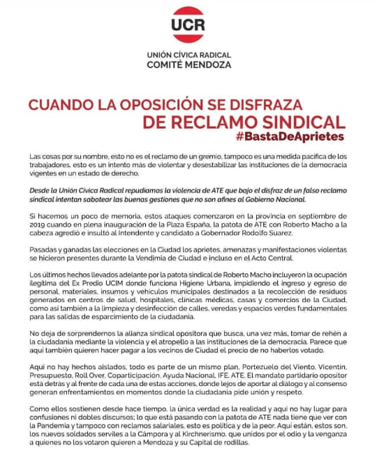 La Provincia de Mendoza no escapa a las características generales e incluso presenta números más graves en muchos casos. Un PBG 2019 menor al de 2015; un 29,7% de hogares y un 42,1% de población en condiciones de pobreza, lo cual significa unos 800.000 mendocinos y mendocinas; vencimientos de capital e intereses de deuda imposibles de afrontar, entre otros.