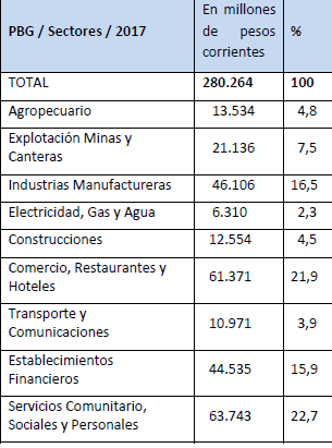. Utilizaremos los datos del 2017 ya que los restantes son provisorios. En comparación, se estima que el PBG del 2019 fue de $500 mil millones.
