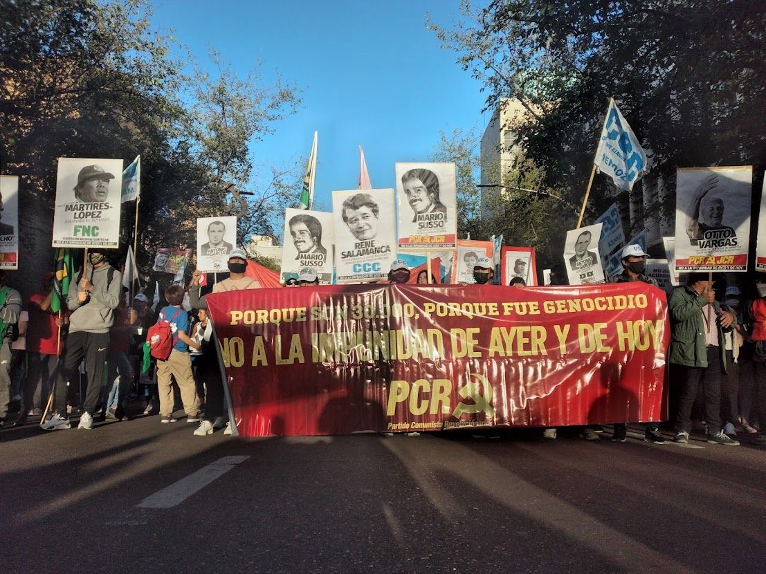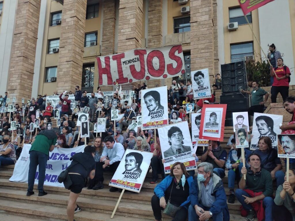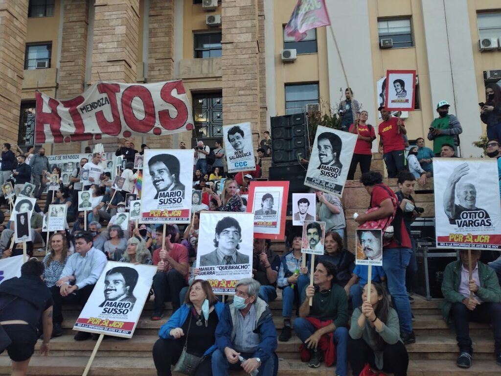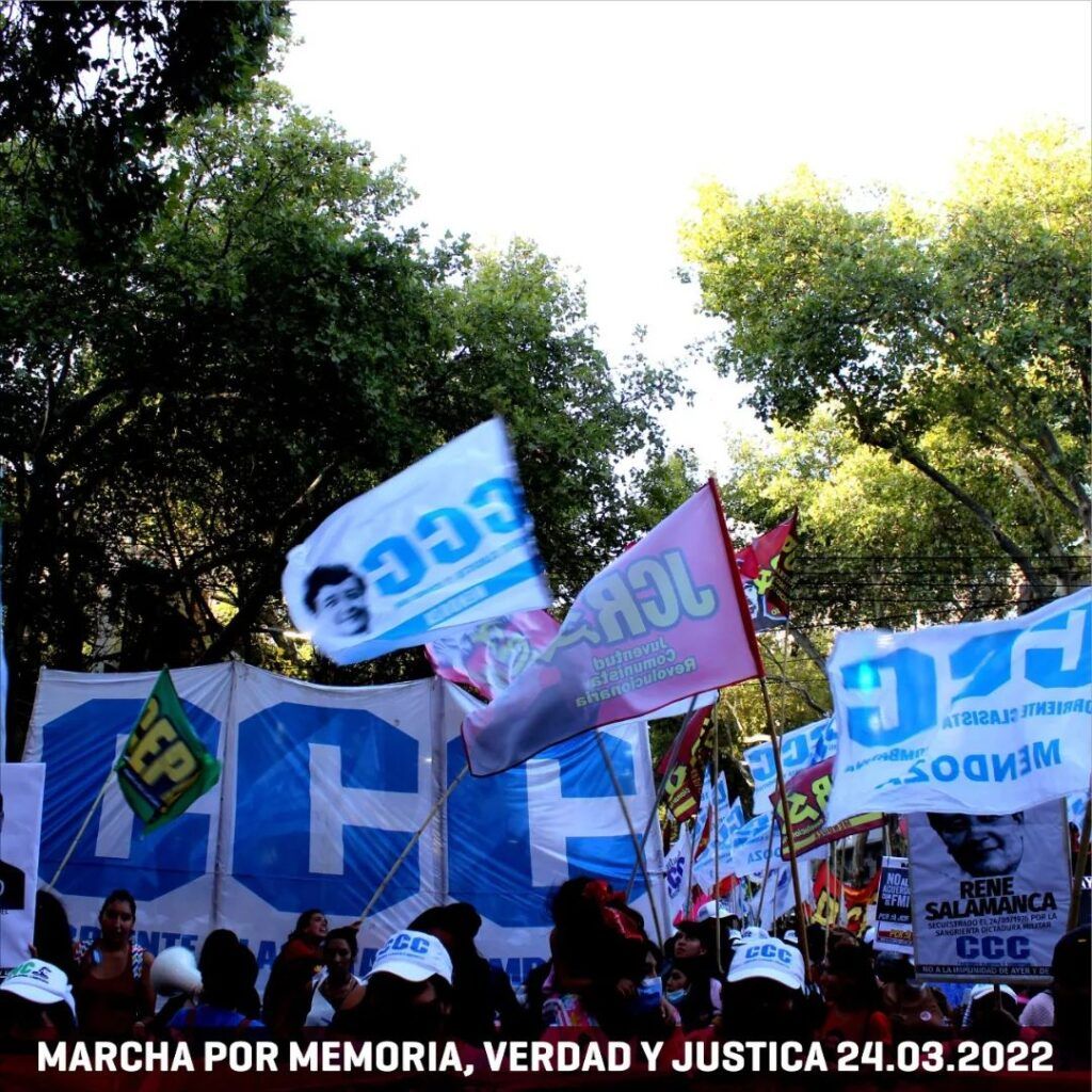 Cerca de las 17hs, organismos de derechos humanos, organizaciones sociales y políticas, se empezaban a concentrar para marchar. Desde el PCR-JCR Mendoza, junto a Liberpueblo, CCC , Apepro Cuyo, CEPA, MUS, organizaron un homenaje a Mario Susso, camarada asesinado el 20 de marzo del 1976 durante la lucha antigolpista. El acto fue antes de arrancar la marcha, en él hablo la Yes, la referenta de la agrupación estudiantil CEPA y le siguió el secretario zonal del PCR Facundo Guerra, quien marcó la importancia de homenajear a Mario: «…Mario fue dirigente estudiantil de la UTN y el PCR, luchó por la liberación del pueblo y denunció activamente los preparativos golpistas. Él, observaba con preocupación la situación social y política del país y, como tantos miles de jóvenes, buscaba el camino más justo para encauzar esas inquietudes «…