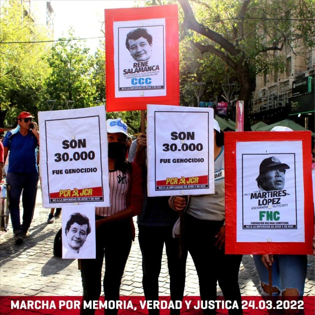 Este 24 nos encontró nuevamente en las calles y en una marcha muy grande, fue distinta a otras, cantamos, gritamos, expresamos en nuestras consignas y presencia que acá estamos, que no vamos a bajar las banderas por las que lucharon nuestros camaradas, que seguimos buscando justicia, pero sobre todo que seguiremos en la lucha contra la impunidad de ayer y de hoy, y que ellos y ellas alumbran el camino para conquistar el objetivo por el que dieron la vida: una sociedad sin explotados, una sociedad sin injusticias.