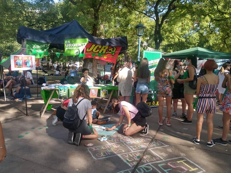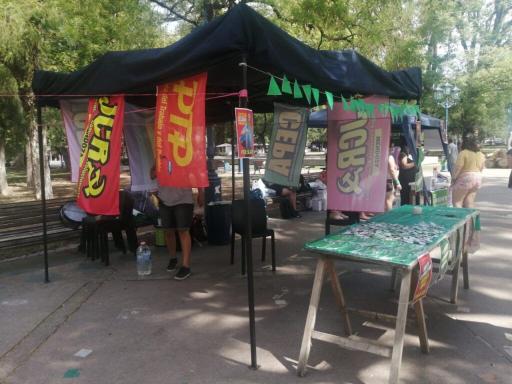 Desde muy temprano las compañeras de la Campaña por derecho al aborto legal seguro y gratuito fueron armando su gacebo, al igual que las compañeras del NUM y demás organizaciones. La JCR y PCR también estuvieron presentes con sus materiales de lectura, merchandising, canciones, juegos, maquillaje, para hacer de la vigilia un momento de lucha, de unidad y de afiliación.