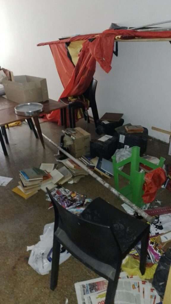 Durante el fin de semana largo se produjo un robo a nuestro local del PTP. El robo parecía un allanamiento, rompieron rejas, revolvieron cajones, y desparramaron documentación y libros por todas partes, rompieron objetos, forzaron piezas de seguridad y se llevaron computadoras, elementos de trabajo de serigrafia y sublimación, y el equipo completo de la radio de la organización Ni un pibe/a menos por la droga, entre otras cosas.