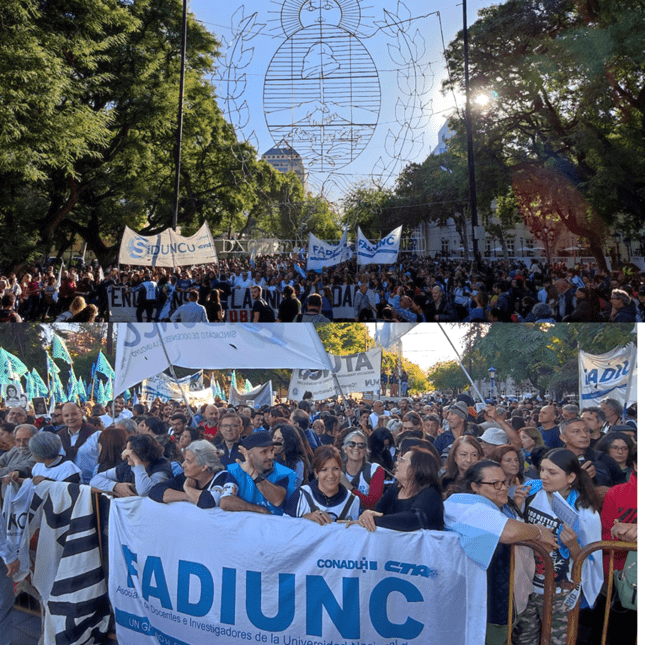Más de 40.000 personas participaron de la Marcha que partió desde el Centro Universitario, en el Parque San Martín, hasta la Plaza Independencia en el centro de la Ciudad. Hay que retroceder a la gigantesca pueblada del agua, de fines de 2019, para encontrar una movilización popular de tal magnitud.  Fue impactante y emotivo el apoyo y acompañamiento de trabajadores de sindicatos (de la CGT y las CTA),  de la UTEP y otros movimientos sociales, y de autoconvocados.   Padres y madres, estudiantes secundarios, personas de diferentes extracciones sociales y contradictorias posiciones políticas (votantes y opositores a Milei) acompañaron a autoridades, docentes, no docentes y graduados,  porque siguen valorando la importancia de contar con una Universidad pública, gratuita, autónoma, laica, de calidad, plural e inclusiva.