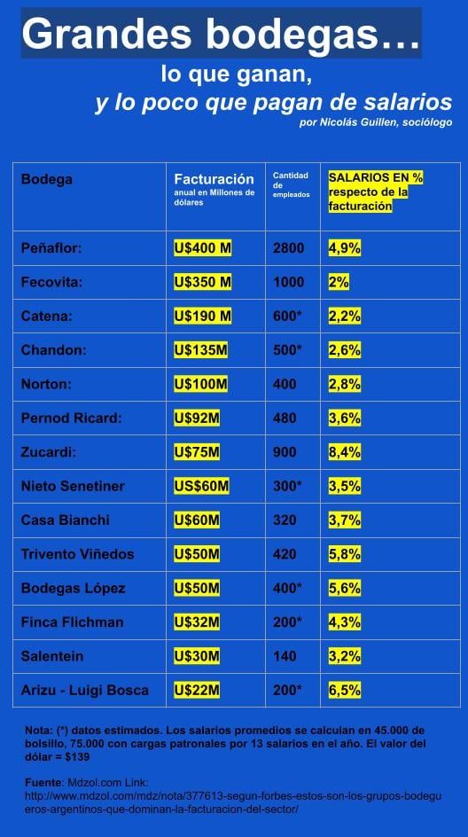 La situación sobre la facturación de las bodegas es indignante porque las ganancias son muy grandes y el porcentaje que se destina a salarios es vergonsoza. Aquí van los motivos del PARO: