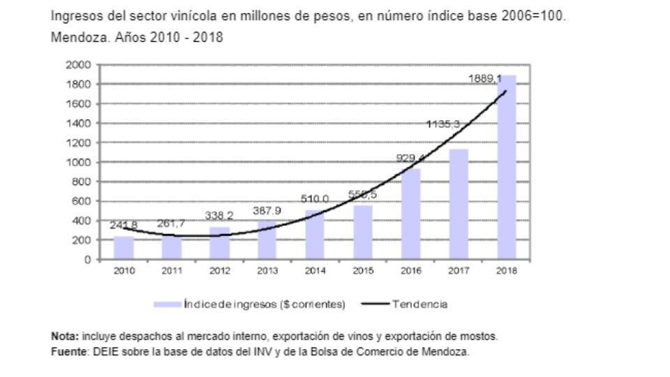 Durante el 2020 el consumo de vino creció 7% en el mercado interno con respecto al 2019, y las exportaciones crecieron un 35% comparado al año anterior, sobre todo la venta de vino a granel. Sólo las exportaciones representaron 720 millones de dólares FOB. Las 8 bodegas más importantes, la inmensa mayoría extranjera, concentran el 80% de esas exportaciones.