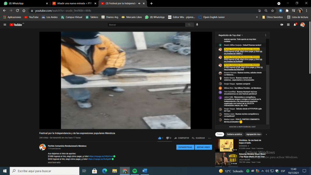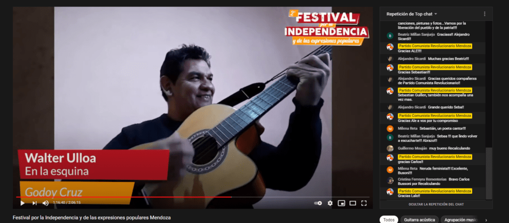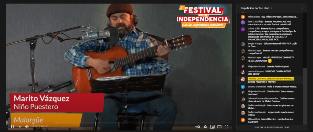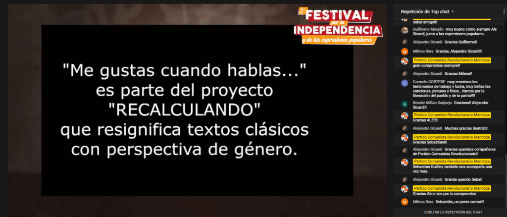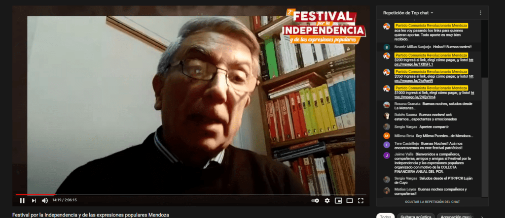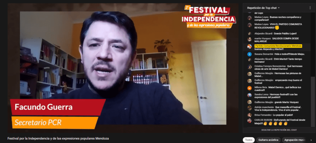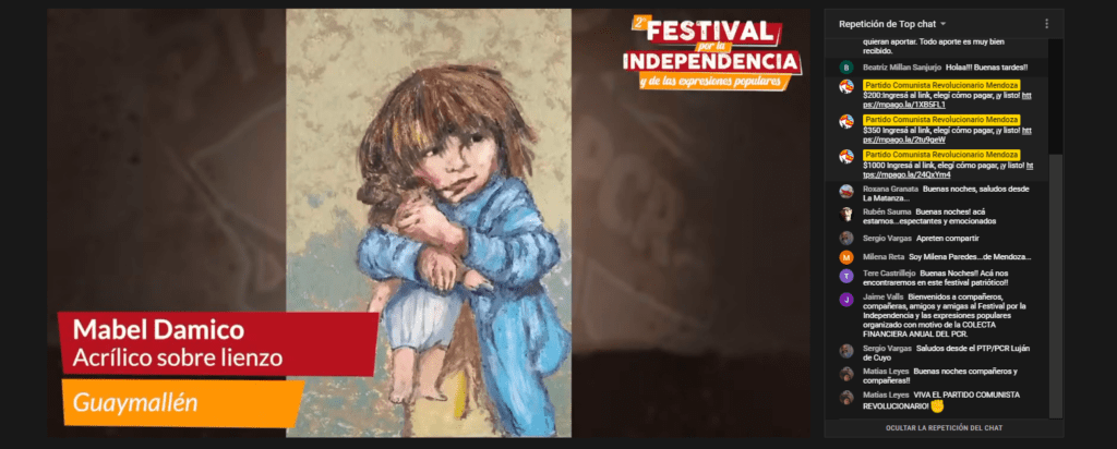 En medio de la pandemia se profundiza el hambre y las necesidades y crecen las luchas. Se va desarrollando el protagonismo popular para resolver las emergencias en la pelea por conquistar la segunda independencia, desde el arte y la cultura también da la batalla. Este 9 de julio en Mendoza, el Partido Comunista Revolucionario realizó la 2ª edición del Festival por la Independencia y de las expresiones populares. El mismo se realizó en el marco de la colecta anual financiera.