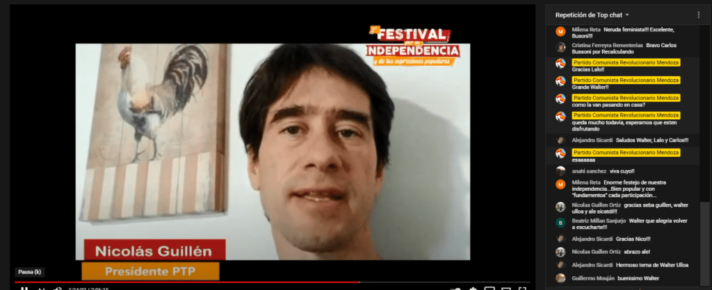Los saludos de camaradas referentes también estuvieron, Jaime Valls, Facundo Guerra secretario de la zona, Nicolás Guillén presidente del PTP Mendoza. Destacamos la difusión del mismo que mostro el compromiso con el festival de distintos camaradas zonales.